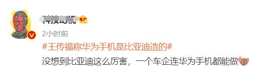 比亚迪董事长王传福上热搜,称“华为手机大部分是我们造的”,还调侃了雷军造车