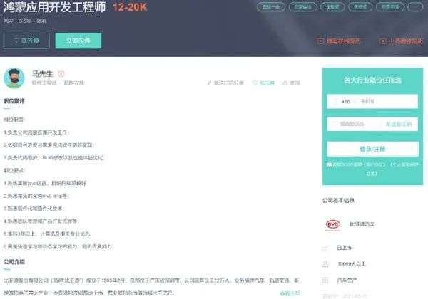 值得注意的是,据中国基金报,今年早些时候,有网友上传的图片显示,在招聘网站上,比亚迪开放了“鸿蒙应用开发工程师”的招聘岗位。其岗位职责显示:负责公司鸿蒙应用开发工作;依据项目进度与需求完成软件功能实现;负责代码维护,BUG修改以及性能体验优化。