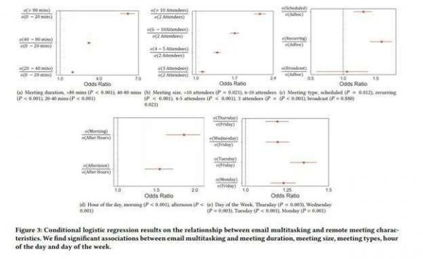 图 | 通过回归分析,研究人员发现远程会议分心的可能性与会议长度、参会人数、类别、时间息息相关