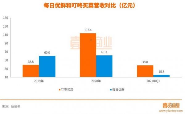 在营收方面,招股书显示,叮咚买菜的总收入从2019年的38.801亿元增长到2020年的113.4亿元,实现了192%的同比增幅。今年一季度,叮咚买菜实现营收38亿元,同比增长46%。