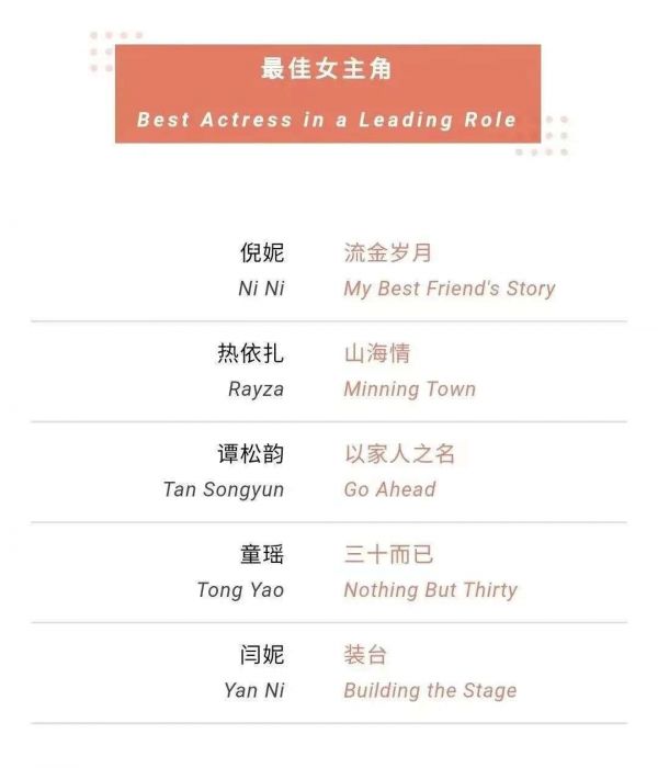另外值得一提的是,本届名单上同时出现了三个90后的身影:90年的谭松韵、94年的黄尧以及99年的任敏。尽管个个年轻,但没有一位是所谓的流量艺人,基本能让观众及粉丝统一立场:入围即肯定,提名即认可。