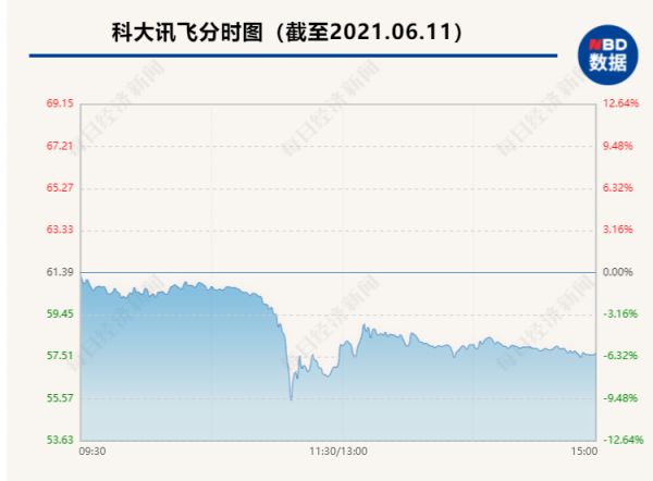 6月11日,科大讯飞开盘一直维持震荡,但到10时50分时却风云突变,股价直线跳水,仅15分钟就暴跌9.58%逼近跌停,而后小幅反弹。
