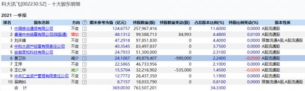 截至第一季度末,科大讯飞董事长刘庆峰直接持有科大讯飞4.4%股份,位于十大股东之列。按最新股价计算,其持股身家可达56亿元。