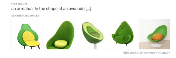 最大的希望可能来自输入端,也就是来自生成网络,研究人员用它解释大脑数据,将数据变成实际图像。目前最强的生成网络已经很厉害,它能凭借相当少的输入信息绘制高度逼真的图像。比如说OpenAI的Dall-E网络,写一句话:“牛油果型的扶手椅。”它就能根据文字绘制相应的图像,看起来如同人类设计师设计的一样。