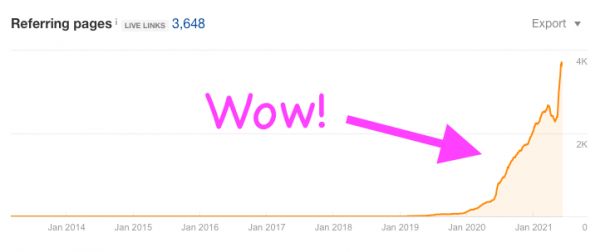 为此,Caspar 特地支付了 Ahrefs(一款 SEO 研究和优化的绝佳工具)订阅费,查看了 Score Counter 的“反向链接配置文件”,然后看到了惊人的数据:Score Counter 在短时间内就积累了 3600+ 的入站链接!