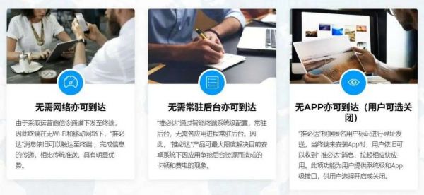 「推必安」能够有效减少骚扰信息和不良内容的推送,能够净化手机上的消息通知;「推必达」则类似短信,即便没有网络也能通过运营商进行消息推送。