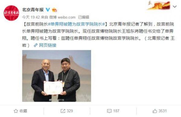 (原标题:卸任一个月后,单霁翔重返故宫任职故宫学院院长)