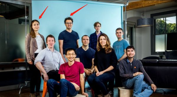 OpenAI 部分成员合影,Amodei 兄妹用红箭头标出 图片来源 | OpenAI