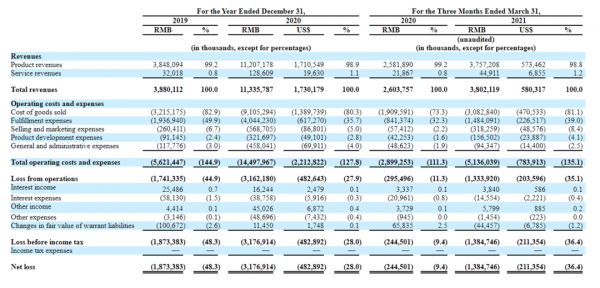 对近来热门的共享类、电商类拟IPO公司略有了解的朋友都可以发现这些公司的共性特点,虽然增速叫好,但经营结果却并不叫座,利润为负者大有人在,叮咚买菜当属此列。