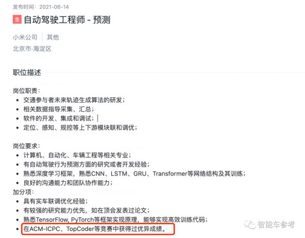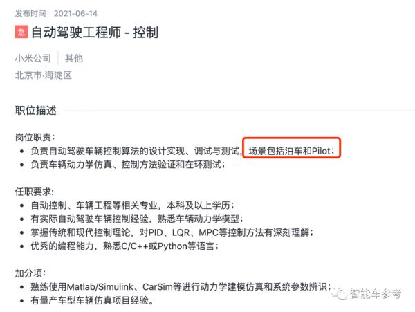 另外,从小米的自动驾驶招聘中,也能管窥小米智能车的“样子”。