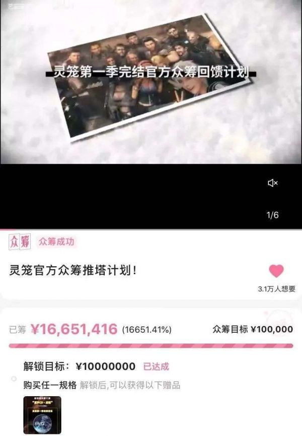 精神股东还不在少数。短短一个月,《灵笼》累计众筹金额就突破了1665万,成功刷新全行业国创周边众筹项目的最高纪录。如此亮眼成绩,不止远超平台和版权方的预期目标,也进一步助推着《灵笼》出圈吸粉,不乏入坑新人留言询问:“啥时候还搞众筹”。