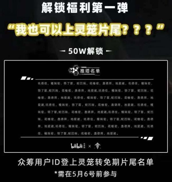 含泪追完《灵笼》终章的观众,本就急需一种形式来释放情绪。尤其是得知部分众筹贡献者,可以出现在《灵笼》的片尾感谢名单,这谁顶得住。但换个思路想,如果这波操作是在两三个月后,粉丝恐怕很难有如此惊人的战斗力。