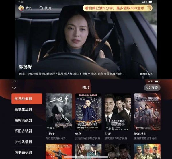 抗日战争、感情生活、精彩谍战、怀旧古装、乡村风情、历史题材、悬疑、动作电影、喜剧电影、爱情电影、战争电影、脱口秀综艺、表演综艺、访谈综艺、喜剧综艺,这是片多多目前有的 15 种影视内容分类。从更为明确的细分品类来看,片多多的内容确实不多,但官方宣传的几万部影视作品还是能满足大部分人的观看需求——如果他们不急着看新片的话。