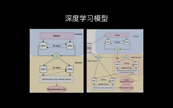 左边的这个是一个表征学习的方法深度学习的,上面是音乐,它把音乐变成一个极度浓缩的表征z。