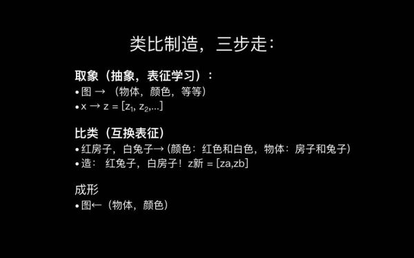 “取类比象生成”有三个步骤。首先第一步叫做抽象或取象,在机器学习的行话里叫做表征学习,什么意思呢?