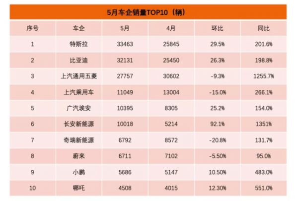 这一增长率看着夸张,但实际上,这是因为特斯拉4月新车注册量创今年新低,基数过小才引致增长率大幅增加。