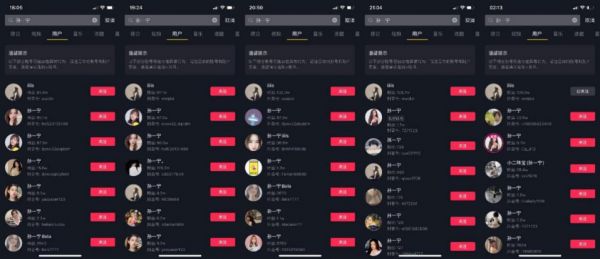 盒饭财经(ID:daxiongfan)在抖音上搜索孙一宁时,不同时间段出现了数十个名为孙一宁的账号,其中除了iiiis之外,均为修改了名字和头像的高仿,有账号一小时净增数万人。晚九点,这些与孙一宁同名且搬运孙一宁视频的高仿账号,无法搜索找到。