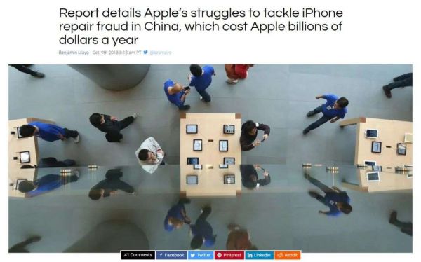 2019 年,苹果就科技行业反垄断调查回应美国议员时表示,"自 2009 年以来,提供维修服务的成本已经超过了维修产生的收入"。苹果没有透露具体的原因和数额,对此,坊间普遍认为是售后欺诈导致的。