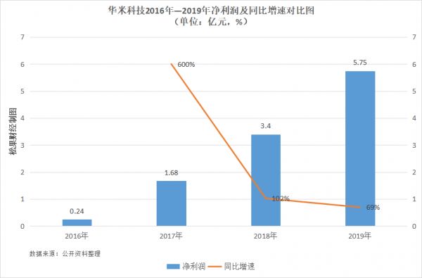 2016年—2019年,华米科技的净利润保持高速增长。同时在小米品牌、流量、渠道及投融资的支撑下,华米科技成功在2018年赴美上市,上市首日盘中价虽破发,但收盘仍逆势收涨2.27%,市值达到6.7亿美元。