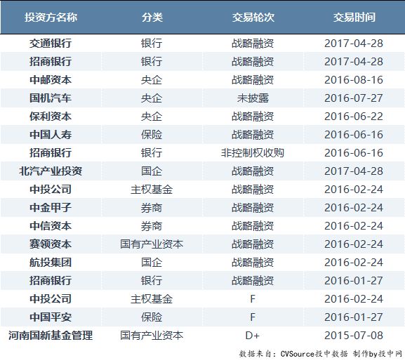 除了上面提过的三家,保利资本、国机汽车、中邮资本这三个有着央企背景的产业投资集团,也在2016年下半年相继投资滴滴。其中保利、国机分别投资4亿美元和2亿美元。