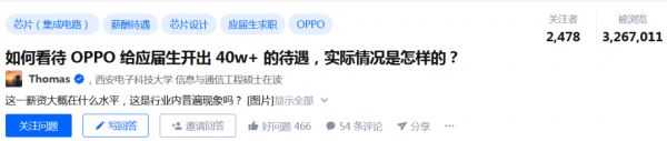 6月15日,知乎话题#如何看待OPPO给应届生开出40w+的待遇,实际情况是怎样的?#冲上热搜第一,引发网友们的热议。