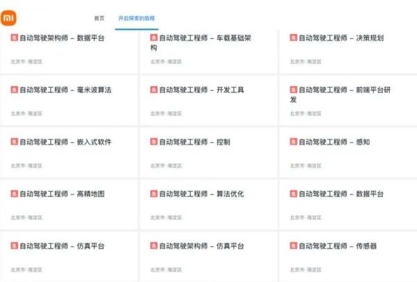 随着造车红海的出现,各大互联网企业纷纷加入造车行列,例如小米近日急聘智能汽车人才,在官网发布多个自动驾驶相关岗位的招聘信息,且所有岗位的工作地点均在“北京市海淀区”,势必会吸引一批高学历的名校毕业生。