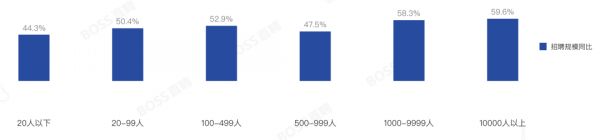 2021春招季不同规模企业的应届生招聘规模同比增幅