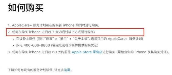 大陆用户购买苹果设备后,后续在线加购AppleCare+服务的时间从激活设备后的60天内缩短为7天内。