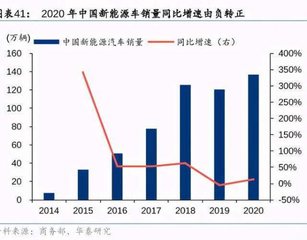 2013-2020年间,我国新能源汽车销量从1.48万辆增加至 136.6 万辆,完成一百倍增长,成为世界上最大、增长最快的电动车市场,将美国甩在身后。