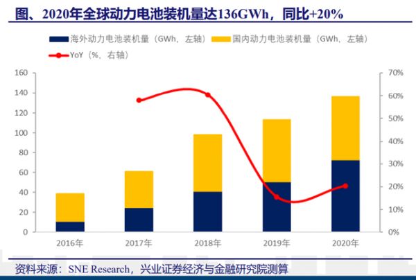2020年,全球动力电池同比增长20%,增量主要来自欧洲。