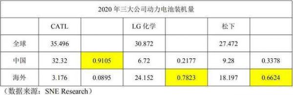 反观宁德时代的对手们,则展现出相反的境况。2020年LG化学和松下的全球装机量分别达到30.8GWh和27.5GWh,分别位列世界第二和第三,来自中国市场需求的装机量占两者总量的比重只有21.77%和33.78%,换言之他们的重心在海外。