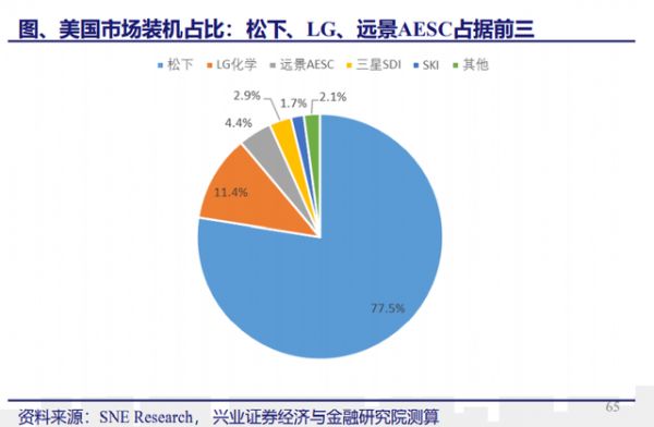 从目前美国动力电池装机量市场格局看,松下以77.5%的份额遥遥领先,第二名是LG化学,市占率达11.4%。全球第一大动力电池生产商,宁德时代在美缺席,目前也暂无产能规划。