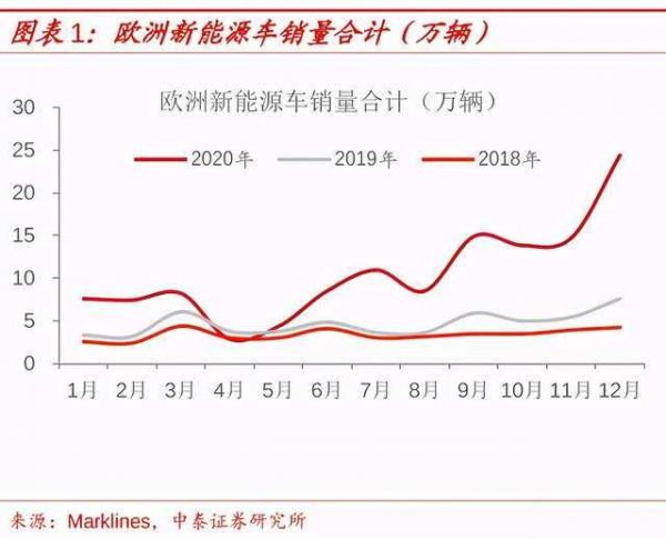 由于欧洲各国政府普遍加强碳排放约束,通过补贴和减税来刺激新能源车消费,2020年欧洲新能源车销量大增,就连曾毓群都在去年8月的汽车蓝皮书论坛上表示:“今年中国电动车销量将被欧洲超过。”