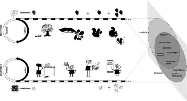 图 | “奖励就足够” 的假设,假定智力及其相关能力可以被理解为在其环境中行动的主体促进奖励的最大化