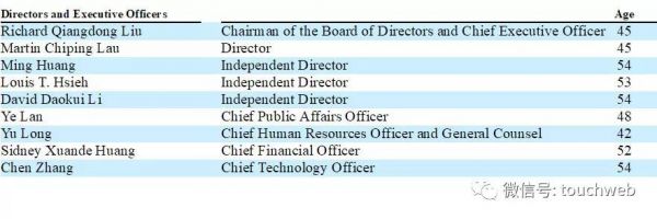 京东商城CEO徐雷、京东物流CEO王振辉及首席合规官YayunLi也被列了出来。