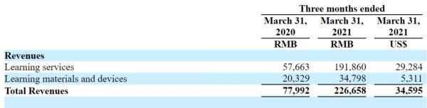 而学习服务业务在持续发力,今年一季度营收达到1.919亿元人民币,同比增长232.7%。收入贡献占比进一步提高,已增长至84.6%。
