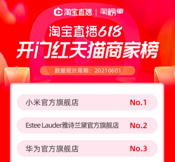 6月1日0点,天猫618正式开卖。据淘宝官方数据显示,开场仅1小时,淘宝直播成交超过了去年全天。其中,品牌自播迎来集中式爆发,店播成交比去年同期增长了100%。在淘宝直播618开门红天猫商家榜中,小米、雅诗兰黛、华为官方旗舰店冲上榜首。