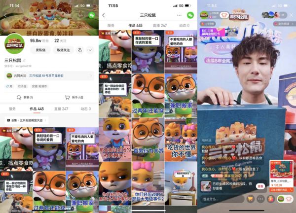 三只松鼠:双账号跑马竞播,抖音重“店播”,快手强“自播”