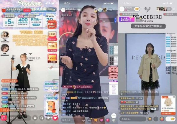 图 / 太平鸟女装在淘宝(左)、抖音(中)、快手(右)的直播间