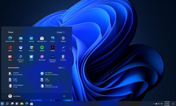 从目前网络上流出的 Windows 11 预览版镜像来看,其开始菜单和任务栏都经过了全新的 UI 设计:应用图标居中显示的任务栏、新的开始按钮和菜单、清理过的托盘区域。