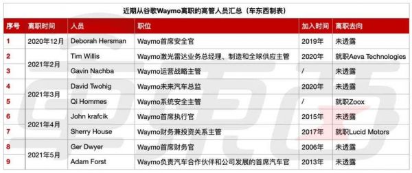 根据公开资料统计,从去年12月份开始,Waymo已经有9位高管都选择了出走,并且其中还不乏CEO、CFO这样的关键角色。