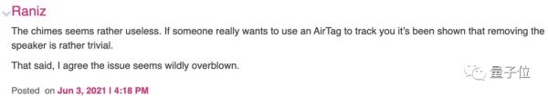 警报似乎没什么用,如果有人想用AirTag来跟踪你,只需要简单地把扬声器移除。