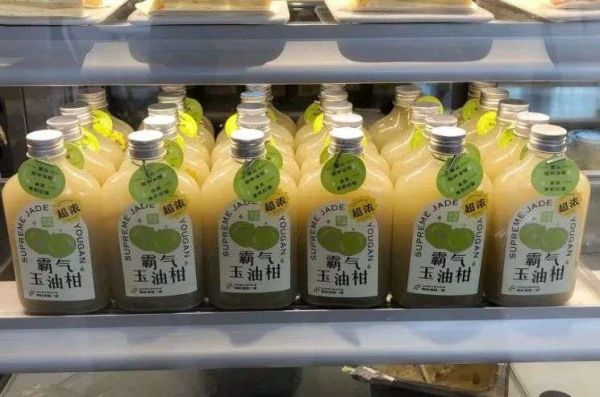 奈雪店面内摆放的油柑汁。摄影:陈敏