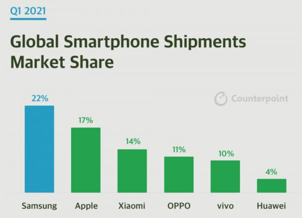 整个欧加集团近一两年的调整都非常频繁,原因很简单,想抓住“后华为时代”的机会。2021 年第一季度的出货量数据显示,OPPO 以 11% 的份额排名第四,realme 一季度的数据还没有,上个季度,realme 以 3% 的市场份额位居全球第七,去年 Q4,OPPO+realme 的份额是超过小米的,再加上一加,OPPO 有望冲击全球第三。