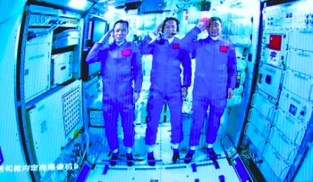 @央视新闻【神舟十二号3名航天员顺利进驻天和核心舱】据中国载人航天工程办公室消息,在神舟十二号载人飞船与天和核心舱成功实现自主快速交会对接后,航天员乘组从返回舱进入轨道舱。按程序完成各项准备后,先后开启节点舱舱门、核心舱舱门,北京时间2021年6月17日18时48分,航天员聂海胜、刘伯明、汤洪波先后进入天和核心舱,标志着中国人首次进入自己的空间站。后续,航天员乘组将按计划开展相关工作。