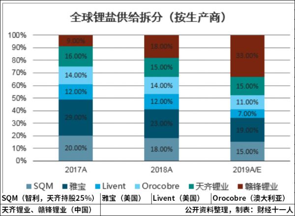 图3:全球锂盐供给市场份额(按生产商)