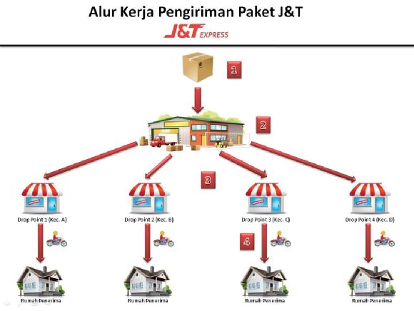 而J&T则在仓库和消费者之间设置了一道配送点(Drop Point),并且几乎完全采取直营模式。总部为每个行政区都设置一个配送点,像雅加达这种大城市甚至8个行政区设了34个配送点,负责各自范围内的派件服务,快递员的交通半径小,投递效率明显提高。