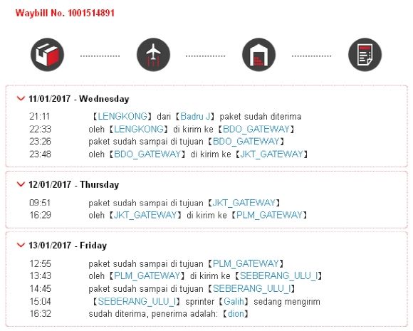 当时市场上最常用的快递公司叫JNE,是一家诞生于1990年的老玩家。从首都雅加达到港口城市Palembang,官方宣称特快件隔日达,经济件2-3天。
