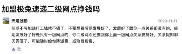 知乎上对“加盟极兔二级网点挣钱吗”的回答