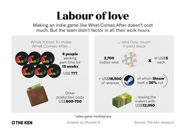 即使《What Comes After》只是权宜之计,它本身也是一种成功。Fahmi估计,它的开发成本只有600至700美元。“基本上,在销售的第一天就收回了成本。到现在为止,这款游戏已经售出3700份。对于只花了三个月时间开发的东西来说,是令人惊讶的。它只要5美元。”